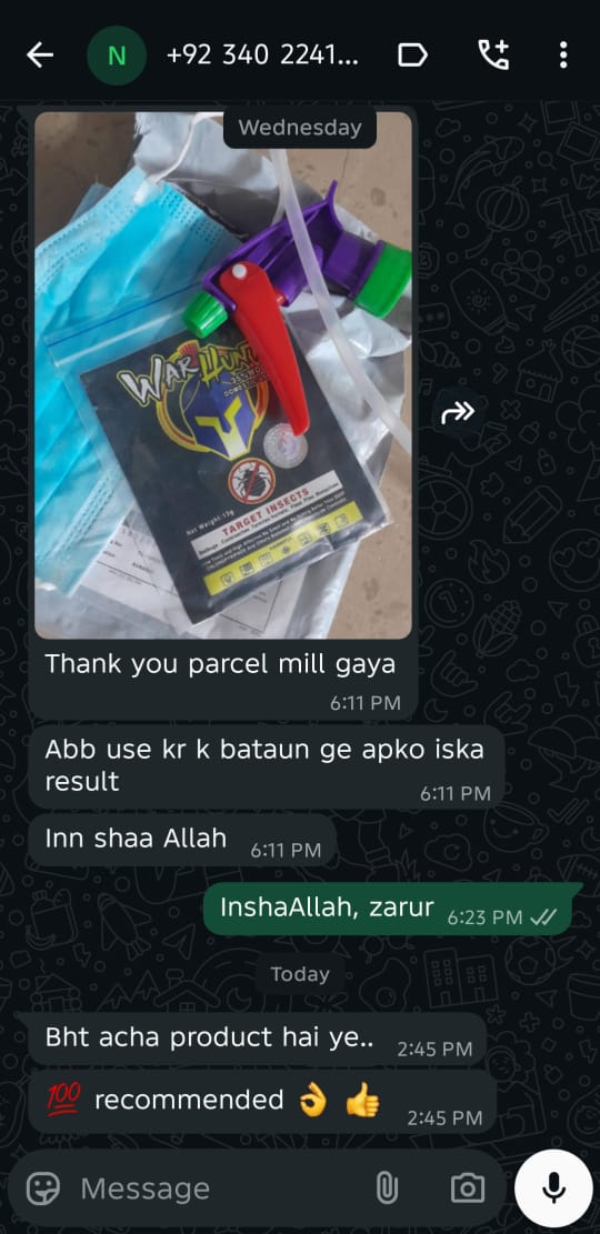 Warhunt insects ke nervous system ko damage karta hai, jiss se woh direct mar jaate hain aur dobara wahan nazar nahi aate.